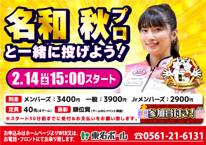 Airリザーブ東名ボールご予約HP:https://airrsv.net/tomeibowl/calendar