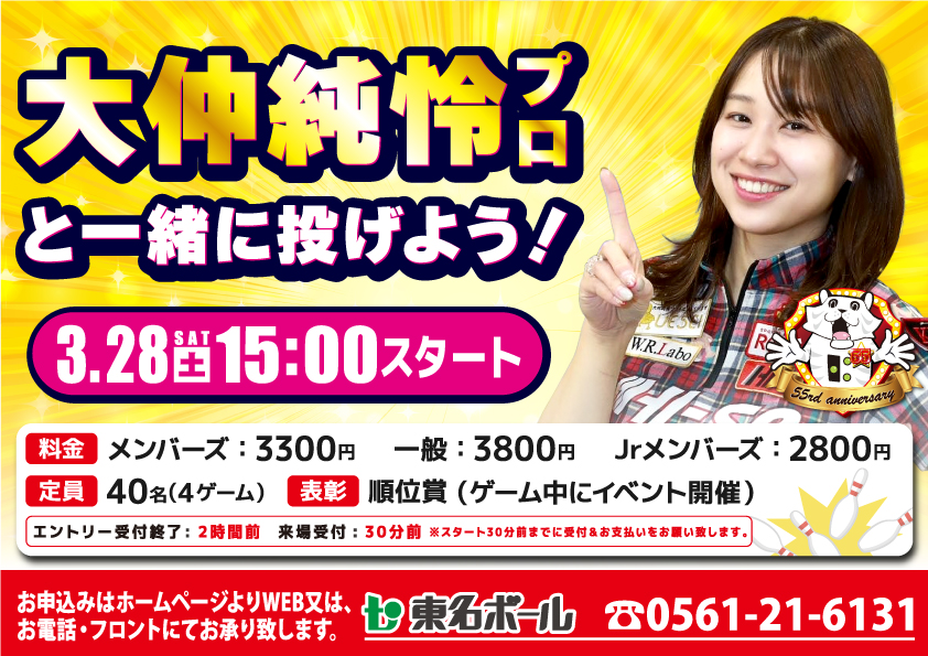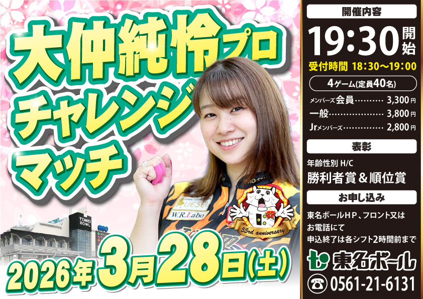 Airリザーブ東名ボールご予約HP:https://airrsv.net/tomeibowl/calendar