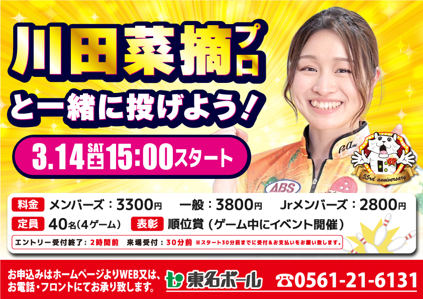 ■受付終了以降にレーン割を行いますので、受付&お支払いをスタート30分前までに時間厳守でお願い致します。