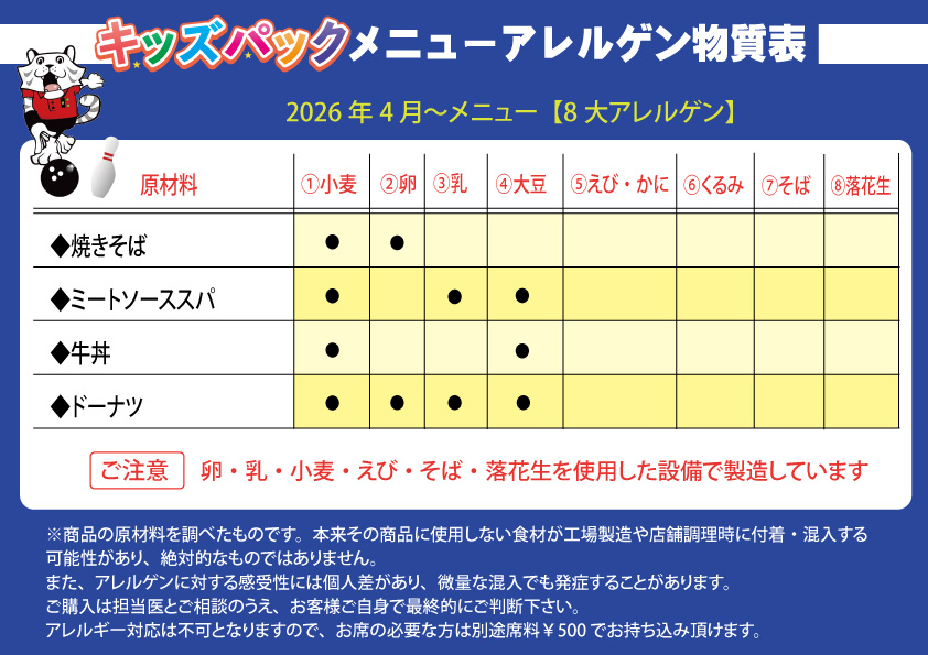 キッズパック(お子様団体プラン) 2026.4.1| お知らせ 大人気キッズパック★子ども会、学童やクラブチーム行事に最適です! ※お子様10名以上からご利用いただけます。※ボウリング+食事+送迎+参加賞+表彰式 全部セットになっています。(時間帯により食事はご利用いただけません)※表示金額は10%の税込金額となります。※随時、お電話でも承ります。※食事会場がBOWLCAFEとなる場合もございます。 キッズプラン予約用投球者名簿 → [PDF] 地図記入用紙(バス送迎時場所) → [PDF] お食事プランアレルギー表 → [PDF]